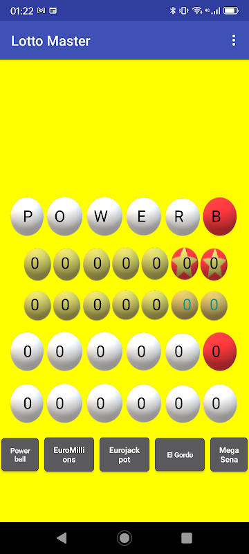 Lotto Master генерирует 5 случайных чисел из интервала от 1 до 69 и одно случайное число из интервала от 1 до 26 для лотереи Powerball, 5 случайных чисел из интервала от 1 до 50 и 2 случайных числа из интервала для лотереи Powerball. Лотерея «Евромиллионы» от 1 до 12, для лотереи «Евроджекпот» 5 случайных чисел из интервала от 1 до 50 и 2 случайных числа из интервала от 1 до 10, для лотереи «Эль Гордо Примитива» 5 случайных чисел из интервал от 1 до 54 и одно случайное число из интервала от 0 до 9, а для лотереи «Мега Сена» 6 случайных чисел из интервала от 1 до 60.
