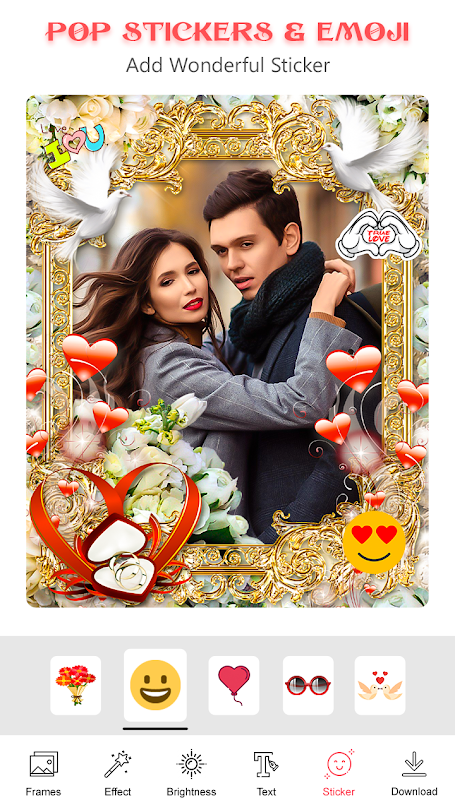 Portrait Love Images: You can add your be Portrait Loved photos with various type of shapes on Portrait Love backgrounds. Add stickers and text.