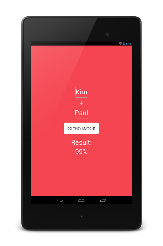 Provide your name and the name of the one you have a crush on. The love test app calculates a matching love score for you two. Find out your compatibility!