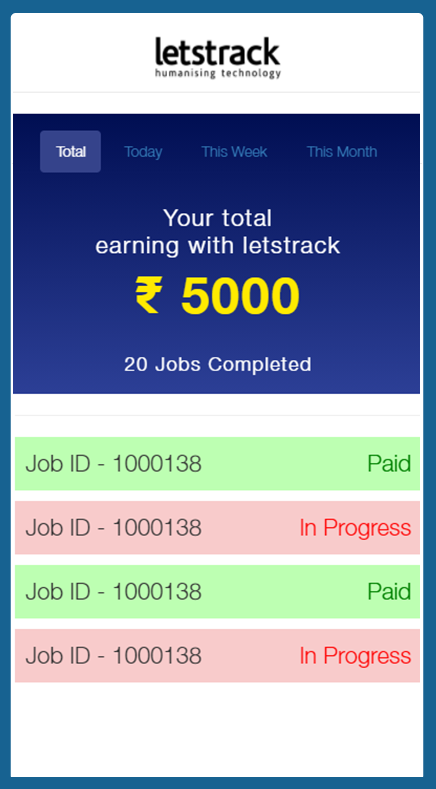 Letstrack Outsource - это идеальное приложение для специалистов по монтажу, привлеченных на аутсорсинг. Это позволяет вам иметь все детали, относящиеся к вашим ежедневным заданиям по настройке. Теперь подключитесь к нашей профессиональной сети через эту платформу и легко управляйте своей повседневной работой и платежами. В приложении вы также можете проверить свою историю работы, незавершенные задачи и причитающиеся платежи.
