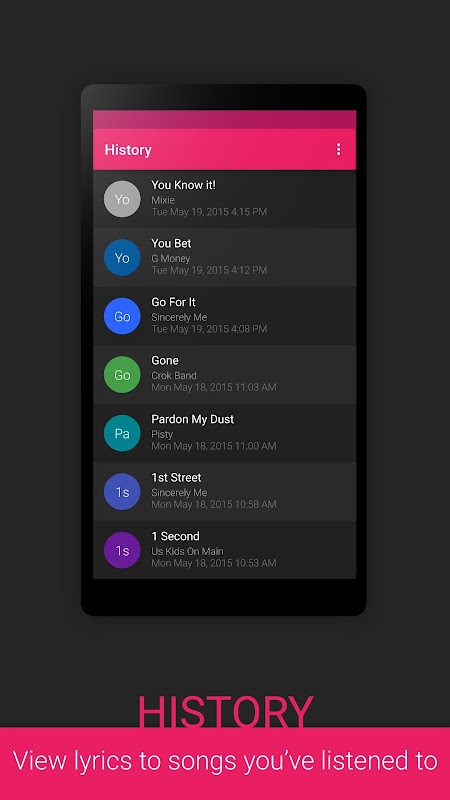 Легкий и простой в использовании, Тексты песен для Android дополняет ваш любимый музыкальный плеер, не пытаясь заменить его. С миллионами подсчета лирики и; Тексты песен для Android добавляет один из крупнейших в мире каталог песен в вашем опыте прослушивания. Нет больше времени впустую поиск; играть песню, слова отображения. Это так просто с текстами для Android.