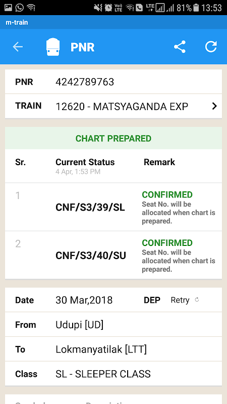 - Check PNR Status