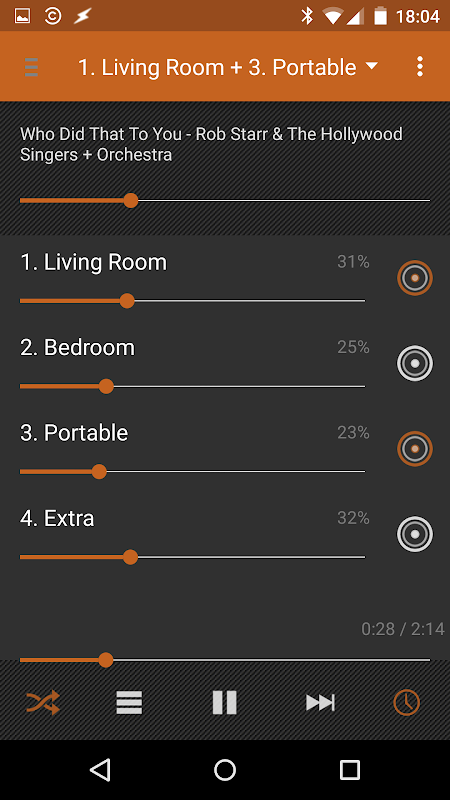 * Select group from the action bar or by long-pressing the group button on one of the players.