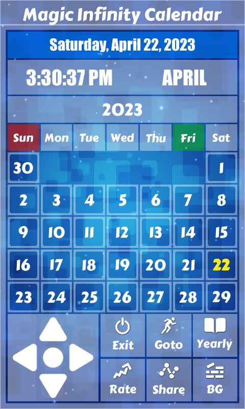 Календарь Magic Infinity — это невероятное изобретение, которое было разработано, чтобы предоставить огромное количество информации о датах и событиях. Это простое в использовании приложение, к которому любой может получить доступ со своего мобильного устройства, позволяет им исследовать хронологию истории человечества, с незапамятных времен до наших дней. Приложение настолько мощное, что может показать вам точный день недели, на который приходится та или иная дата.
