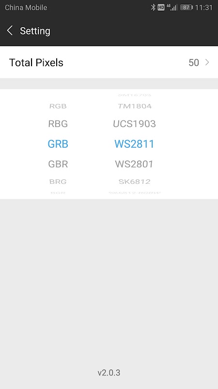SM16703,TM1804,UCS1903,WS2811,WS2801,SK6812,SK6812_RGBW,LPD6803,LPD8806,APA102,APA105,TM1814,TM1914,TM1913,P9813,INK1003,DMX512.