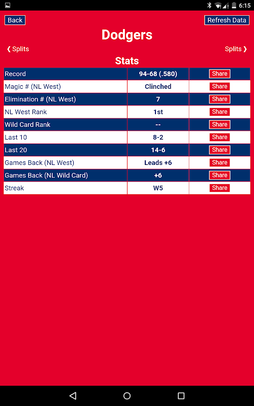 Follow the Major League Baseball playoff race with the Magic Number for MLB! Baseball records, stats, and standings are at your fingertips (and on your home screen) with Magic Number for MLB. Track your team's playoff progress to clinching the division or the wildcard spot at a glance on your phone.