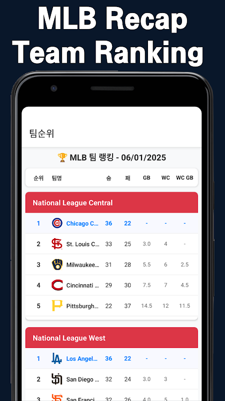 - Рейтинги игроков: мгновенно смотрите рейтинги хоумранов и побед лиги MLB.