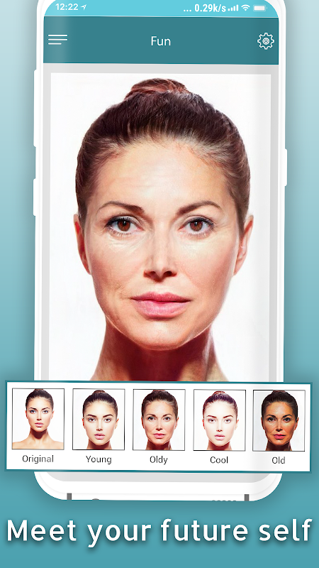 This app was made possible by intensive research into the effects of aging on skin wrinkles and color. The best results are when you take a photo while looking straight into the camera.