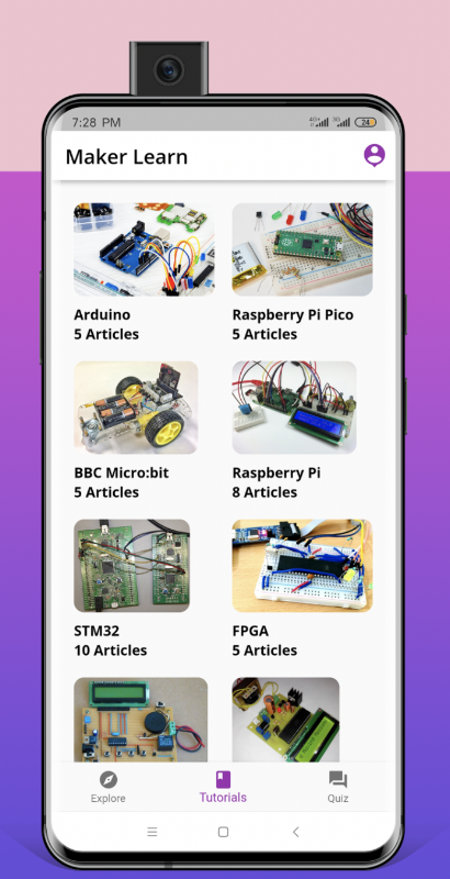 Используя это приложение, вы можете читать статьи об Arduino, Raspberry Pi Pico, BBC Micro: Bit, Raspberry Pi, STM32, FPGA и Microchip PIC.