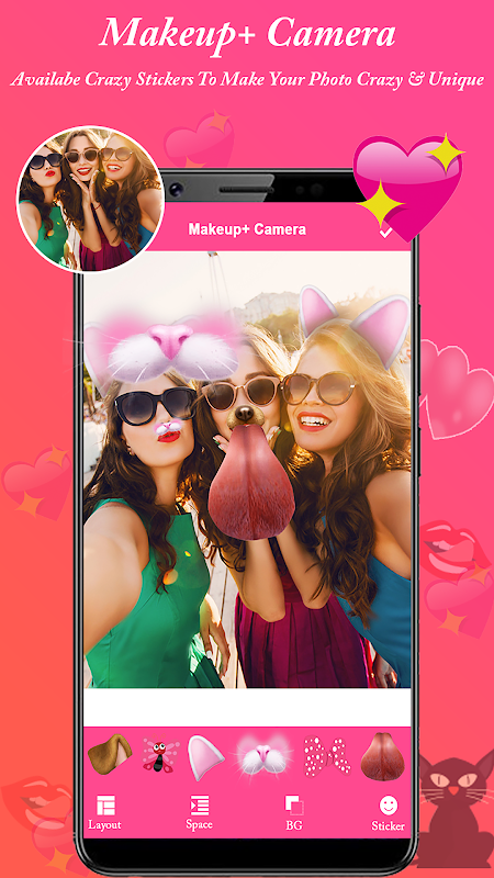 Макияж + Эффект камеры - это Sweet Selfie Camera & Magical Camera App, которая может принимать красоту, используя крутые фильтры, симпатичную наклейку!