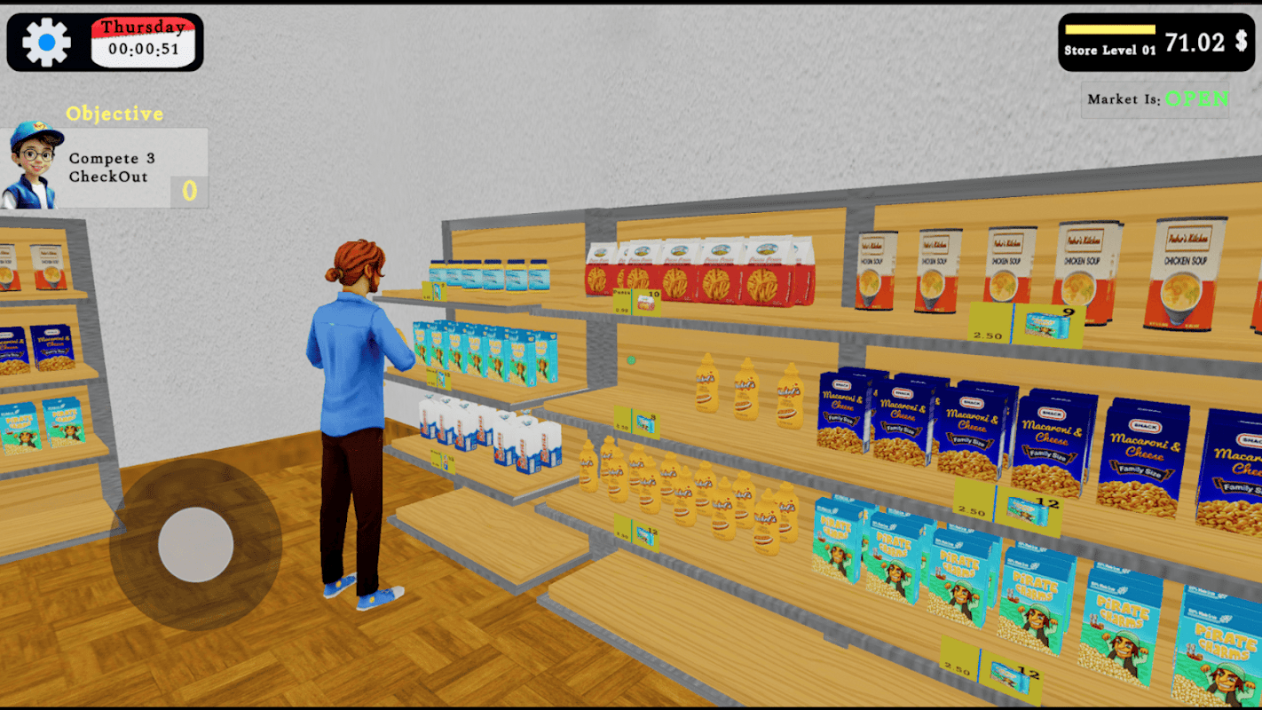 Станьте менеджером магазина и превратите небольшой продуктовый магазин в процветающую империю супермаркетов. Вы будете отвечать за то, чтобы полки были заполнены, чтобы клиенты были довольны, и управляли каждым аспектом вашего розничного магазина. Ваша цель - максимизировать прибыль, сохраняя при этом эффективную работу магазина.