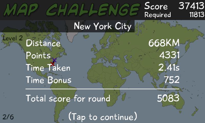 Test your geography with Map Challenge! Locate various cities and landmarks on the map as quickly as you can. Includes 3 level packs: World, Europe and North America, which you can play on either Easy Medium or Hard.