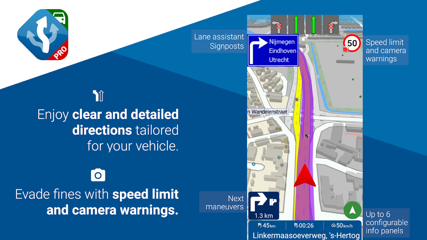 – Интуитивно понятная пошаговая голосовая навигация с подробными указаниями на разных языках.