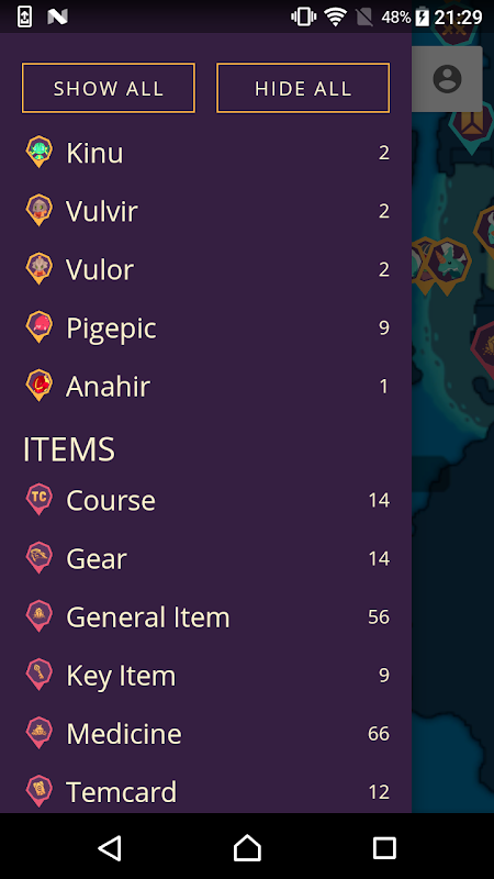 • Progress Tracker - помечайте локации как найденные и отслеживайте ход ваших предметов коллекционирования.
