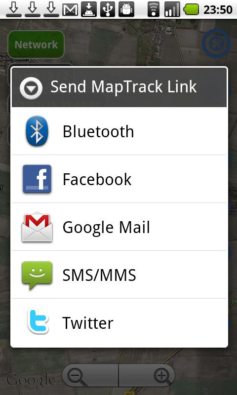 - Sharing: current location, KML, screenshot, Track URL and Viewer