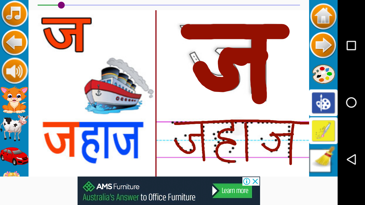 प्राण्यांचे, वाहनांचे आणि खेळण्याचे हि आवाज दिलेले आहेत. त्यामुळे मुले लवकरात लवकर आणि मज्जेत अक्षर शिकू शकतात. तसेच हे अॅप आपण सोशियल मीडियामधून शेअर हि करू शकता.