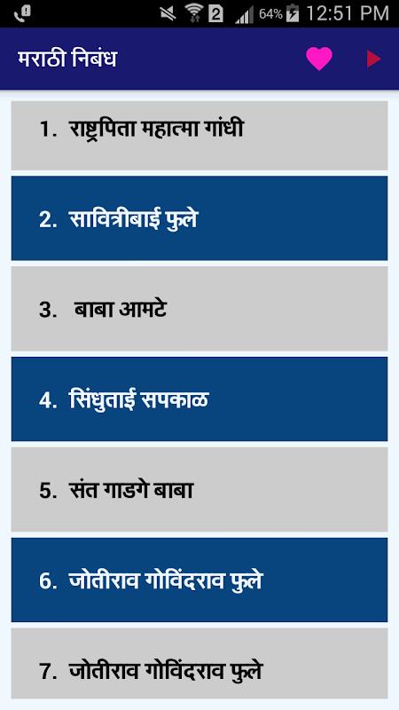 या अँप्लिकेशन मधील निबंध चा अभ्यास केल्याने विद्यार्थ्यांच्या विचारशक्तीला वाव मिळेल.विद्यार्थ्यांच्या दृष्टीकोनातून खूपच उपयुक्त असे हे अँप्लिकेशन ..