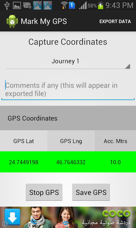 Это приложение поможет вам в накоплении GPS координат в вашем путешествии.