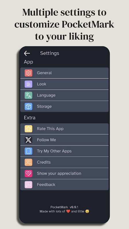 🎨 Изящный минималистичный дизайн, максимальная эффективность: PocketMark имеет элегантный пользовательский интерфейс с восхитительной ненавязчивой анимацией, обеспечивающей удобство письма, не отвлекая внимание, и при этом радующий глаз.