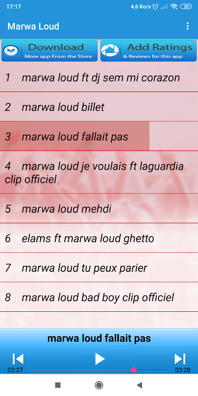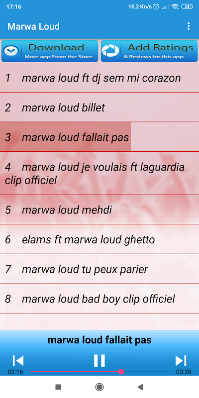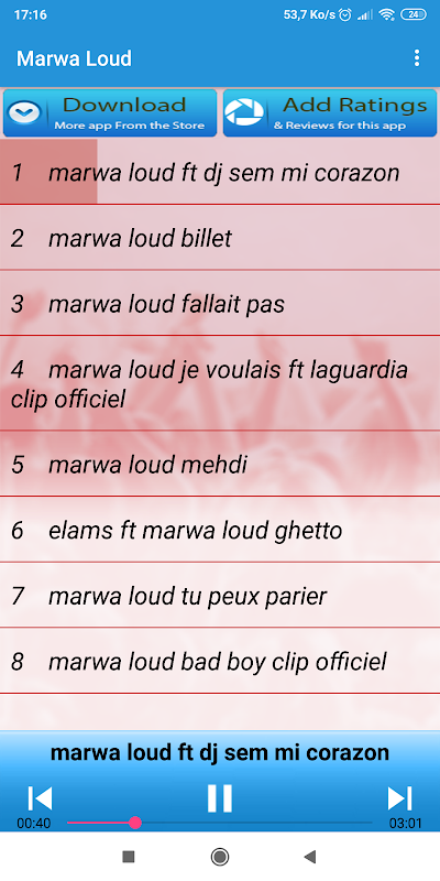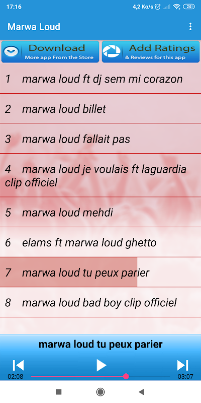 This app is available on all of marwa loud's songs and Allows you to listen to the best songs of the great artist marwa loud without the Internet