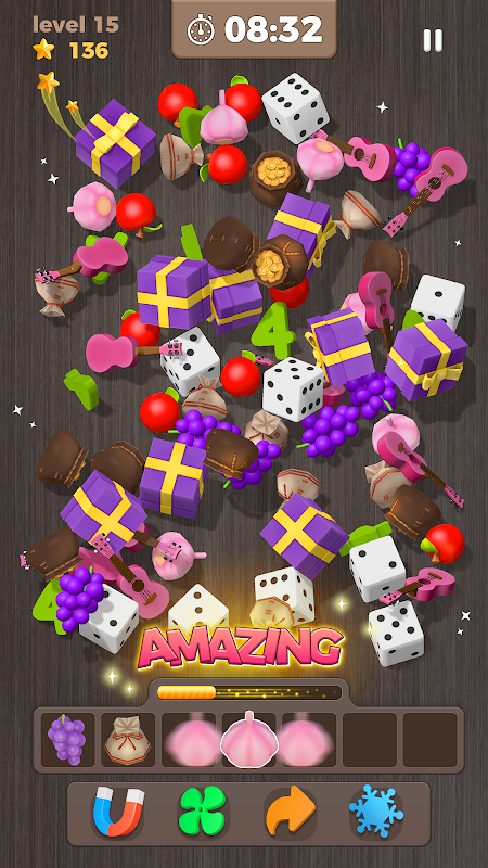 Игра предоставляет вам множество 3D-предметов, таких как красочные конфеты, крутые автомобили, милые мультяшные узоры, пушистые животные и так далее. Узнайте больше в Match 3D Master!