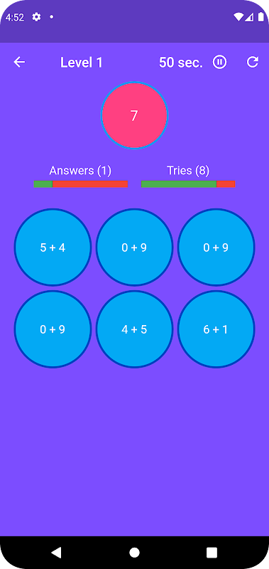 На каждом уровне вы получаете целевое число и набор вариантов выбора. Вам нужно как можно быстрее найти, какой из этих вариантов равен целевому числу. Если вам удастся набрать достаточно очков до истечения времени, вы перейдете на следующий уровень.