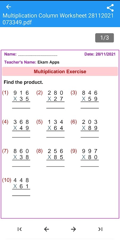 Это приложение решает суммы умножения в длинном методе или методе столбца. Это приложение также предназначено для создания таблиц умножения в формате PDF для печати. Это приложение способно создавать рабочие листы pdf с ключами ответов.