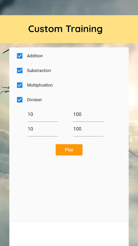 Math Trainer is a simple math game to improve your calculation skill. It comes with addition, substraction, multiplication, and division. You can also set up your number range.