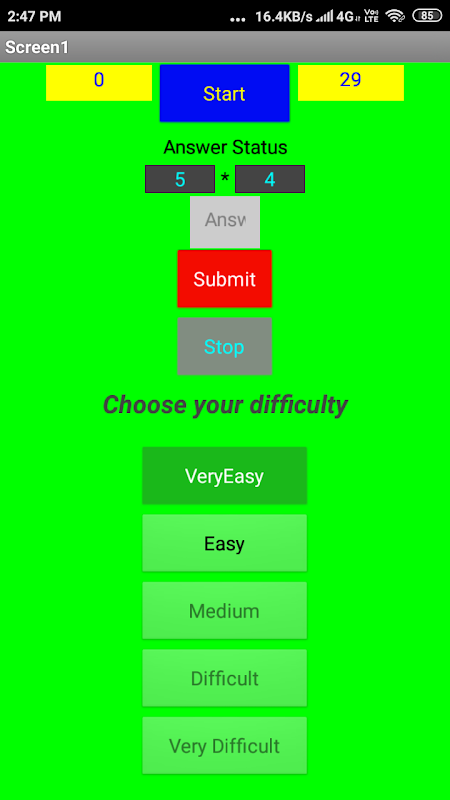This is a quiz app which gives the user mathematical sums. This app contains 5 difficulty levels. There is a time limit of 30 seconds . This app also have the feature of current score and best score.