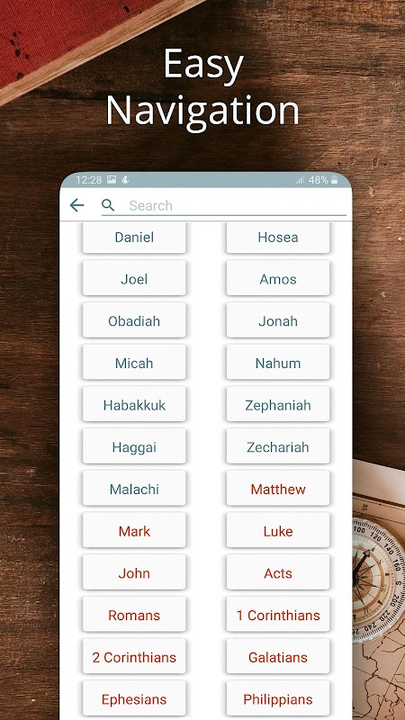 - легкая навигация, 3 касания, чтобы получить особый комментарий к стиху из Библии