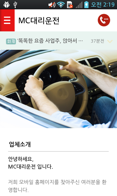 MC대리운전 앱에서는 업체소개, 요금안내, 문의하기, 갤러리 등을 이용하실 수 있습니다.