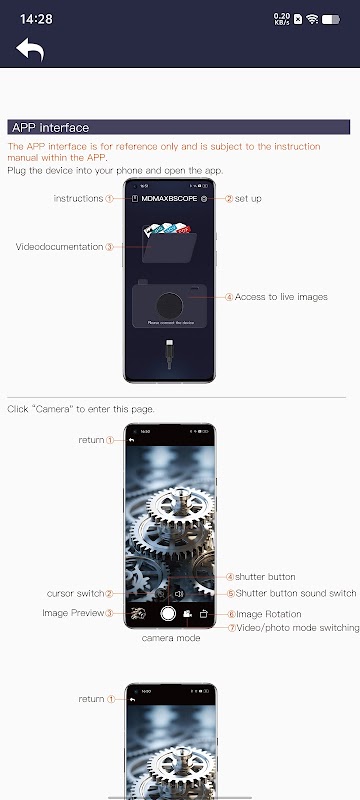 Это приложение подключается к трубной камере через проводное соединение и предоставляет следующие функции: