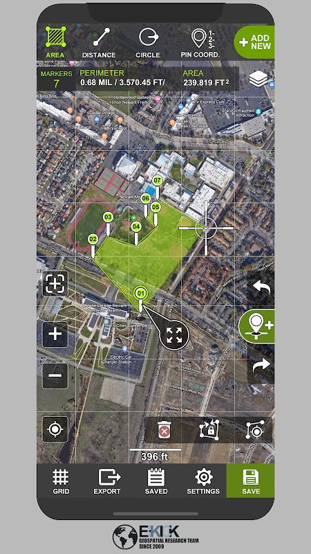 Тактический профессиональный инструмент для измерения площадей на карте. Поместите свои точки на карту, а затем вычислите площадь между всеми точками, вычислите общую площадь маршрута муравья.