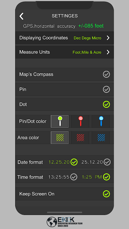 Для точного измерения можно подключить внешнюю антенну GNSS или RTK через Bluetooth.
