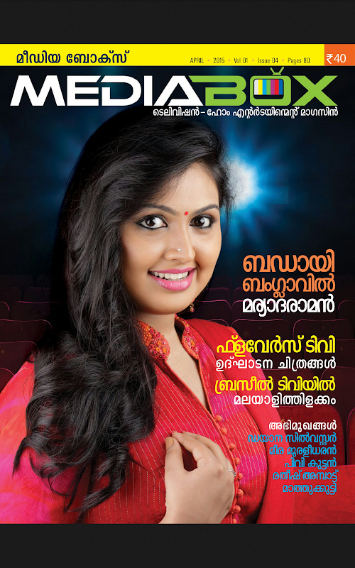 Mediabox Magazine is the first television and home entertainment magazine in Malayalam. Mediabox will be published on a monthly basis and will be making a very visible presence on all newsstands, supermarkets and bookstalls. Along with the printed magazine we are planning to run updates through our website, Social Media pages and to conduct events to boost the subscription of the magazine and gain maximum mileage.