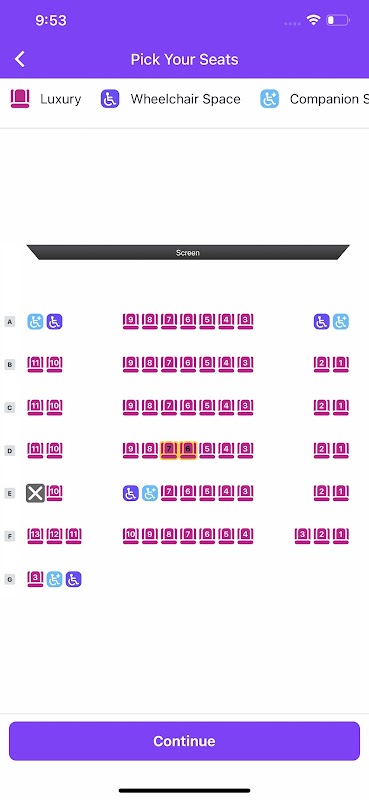 Пропустить линии! Возьмите попкорн, используйте приложение на трибуне, чтобы отсканировать билет, и наслаждайтесь фильмом!