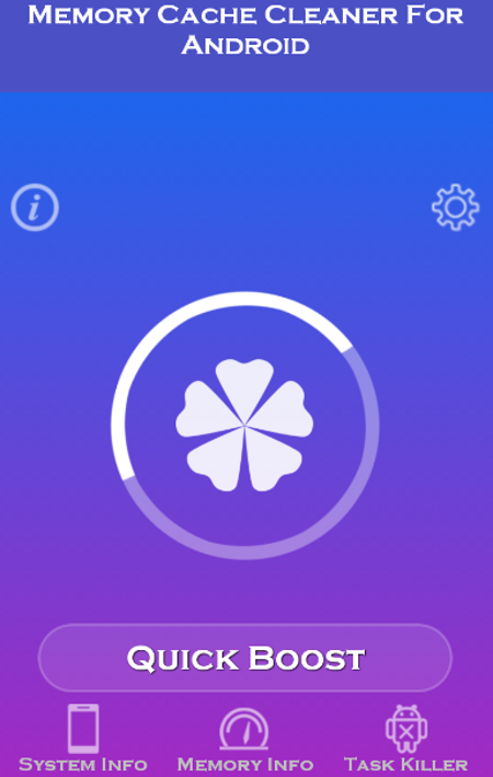 Это приложение состоит в очень пользовательским очистителя дружественный памяти с красивым интерфейсом, который очищает кэш и дает вам больше места в памяти.