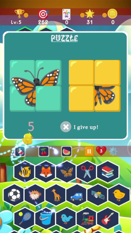 Различные подсказки для преодоления самых сложных заданий (выберите правильное, измените порядок изображений, распознайте размытое изображение, прослушайте ноту)