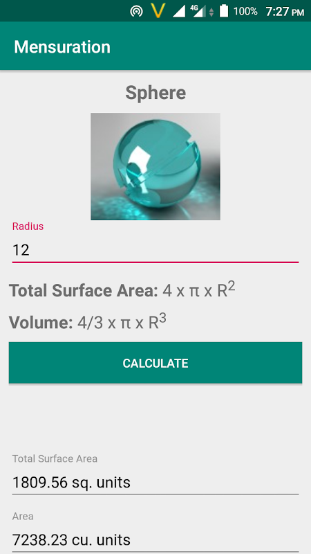 Простое приложение для расчета периметра, площади и объема плоских и твердых объектов