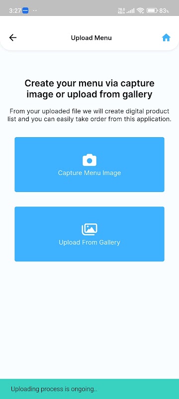 📥 Загружайте меню через галерею или прямую съемку камеры