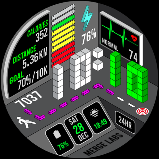 Еще один из серии эксклюзивных «изометрических» умных циферблатов, созданных для Wear OS. Нигде больше вы не найдете чего-то настолько необычного для вашего носимого устройства с Wear OS!