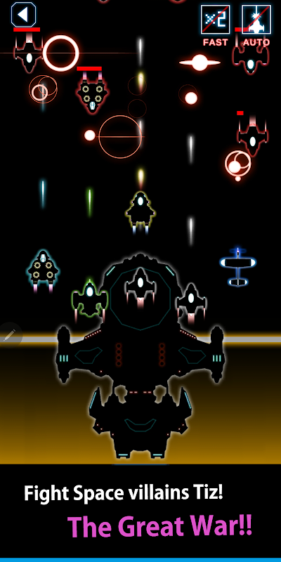 - Слияние / стрельба / космический корабль / холостой ход игры.