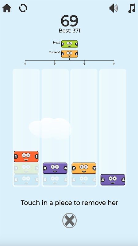 Ваша цель состоит в том, чтобы стратегически освободить блоки, убедившись, что они выровнены, когда они имеют одинаковый номер.