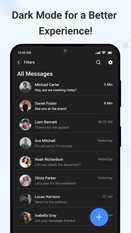 Будь то обмен случайными сообщениями, совместное использование медиафайлов или управление разговорами с помощью различных фильтров, Message App предлагает многофункциональную платформу, которая обеспечивает бесперебойную связь для пользователей Android. Благодаря интуитивно понятному интерфейсу и обширным функциональным возможностям это приложение является надежным компаньоном для всех потребностей обмена сообщениями.