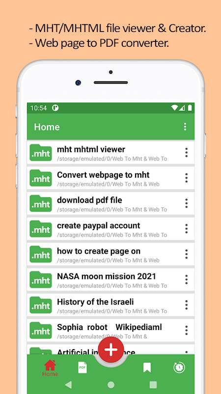 With MHT/MHTML file creator & viewer app you can easily convert web to mht and web to pdf for later use and share.