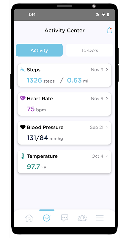 Приложение будет делиться вашими жизненно важными показателями с частотой, определенной вашим врачом через вашу персональную панель управления. Просматривайте свой прогресс в разделе своего профиля в своем приложении.