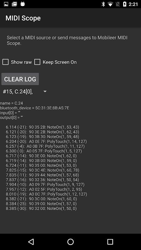 Дисплей MIDI сообщения на экране. Использует новый Android-MIDI API.