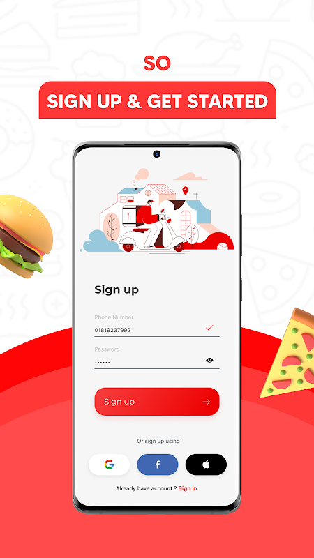 Просто зарегистрируйте учетную запись со своим именем и номером телефона, чтобы разместить заказ и выбрать ресторан, меню, категорию еды, добавить еду в корзину, выбрать оформление заказа, добавить адрес, выбрать способ оплаты, вот и все, заказ выполнен! Кроме того, получите первые бонусы в новой акции и эксклюзивных наградах.