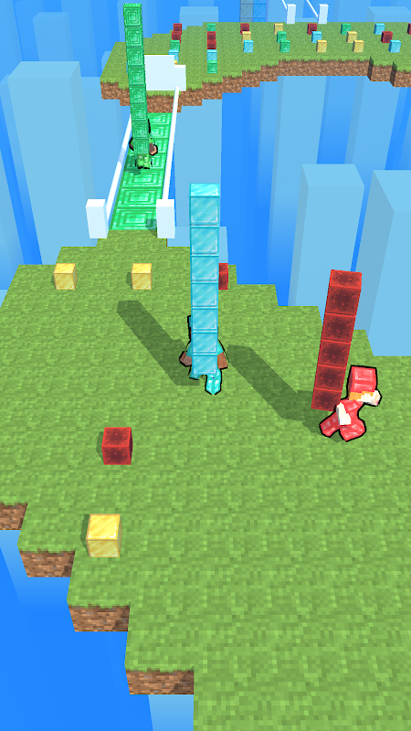 Join the miner race! Collect blocks of your color to build bridges between islands and steal from enemies to obtain more building blocks. Get first to the finish first to complete a level and earn money. Do you think you can reach the finish line first?