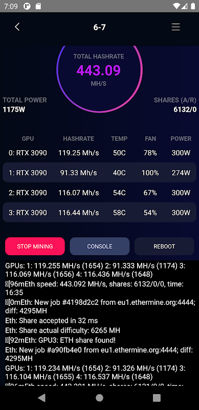 Monitoring and controlling your miners has never been easier. Monitor and control your rigs from mobile phone from all over the world. See your profits and hashrates online, view mining console, edit notifications or even reboot your rig from online.